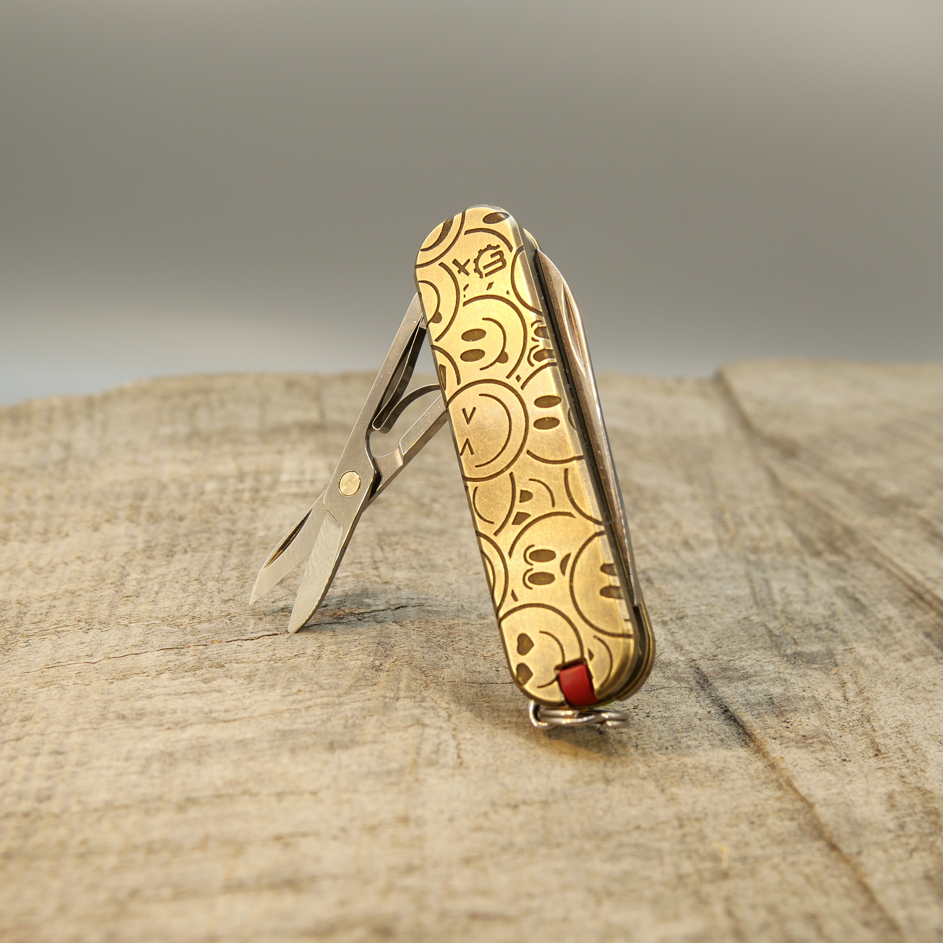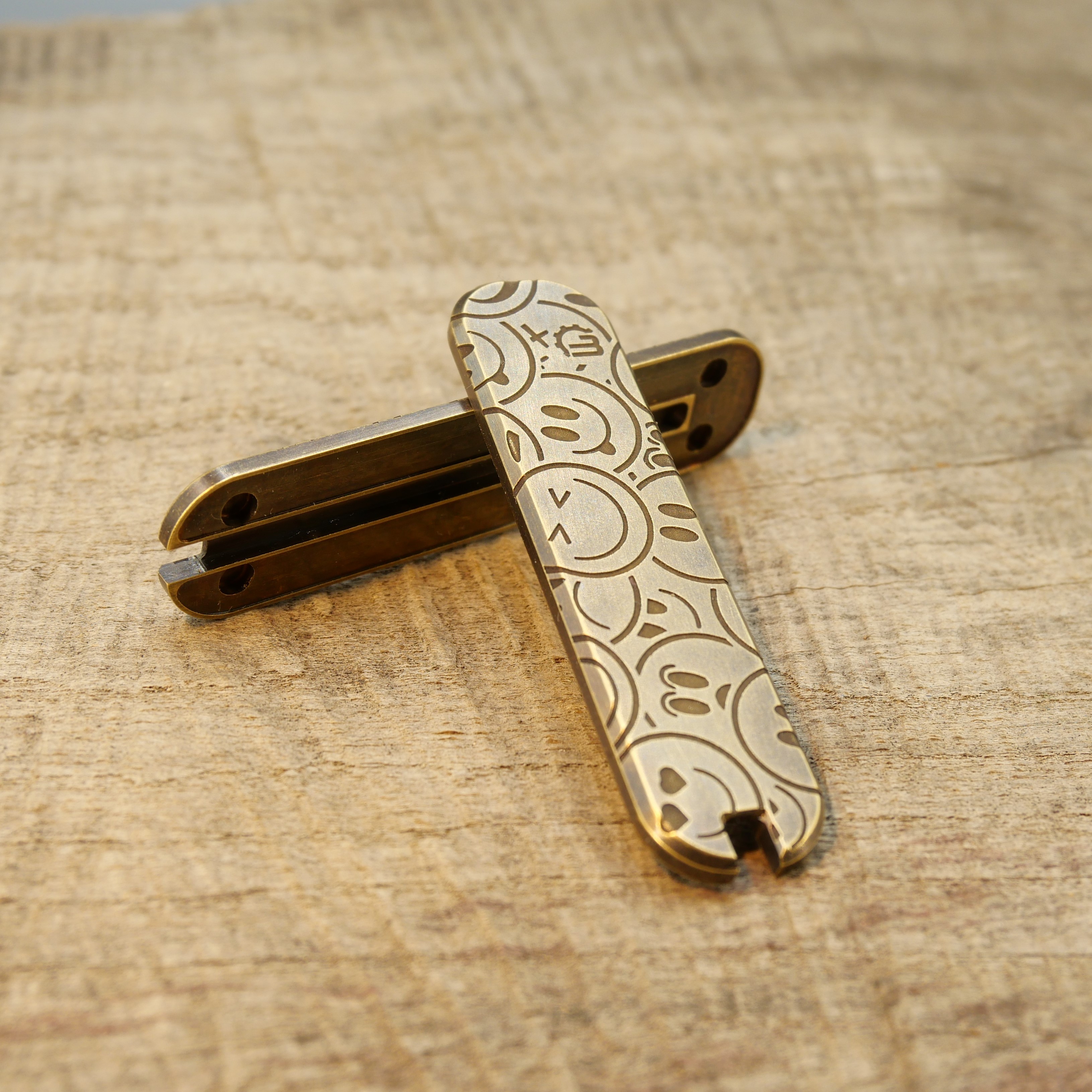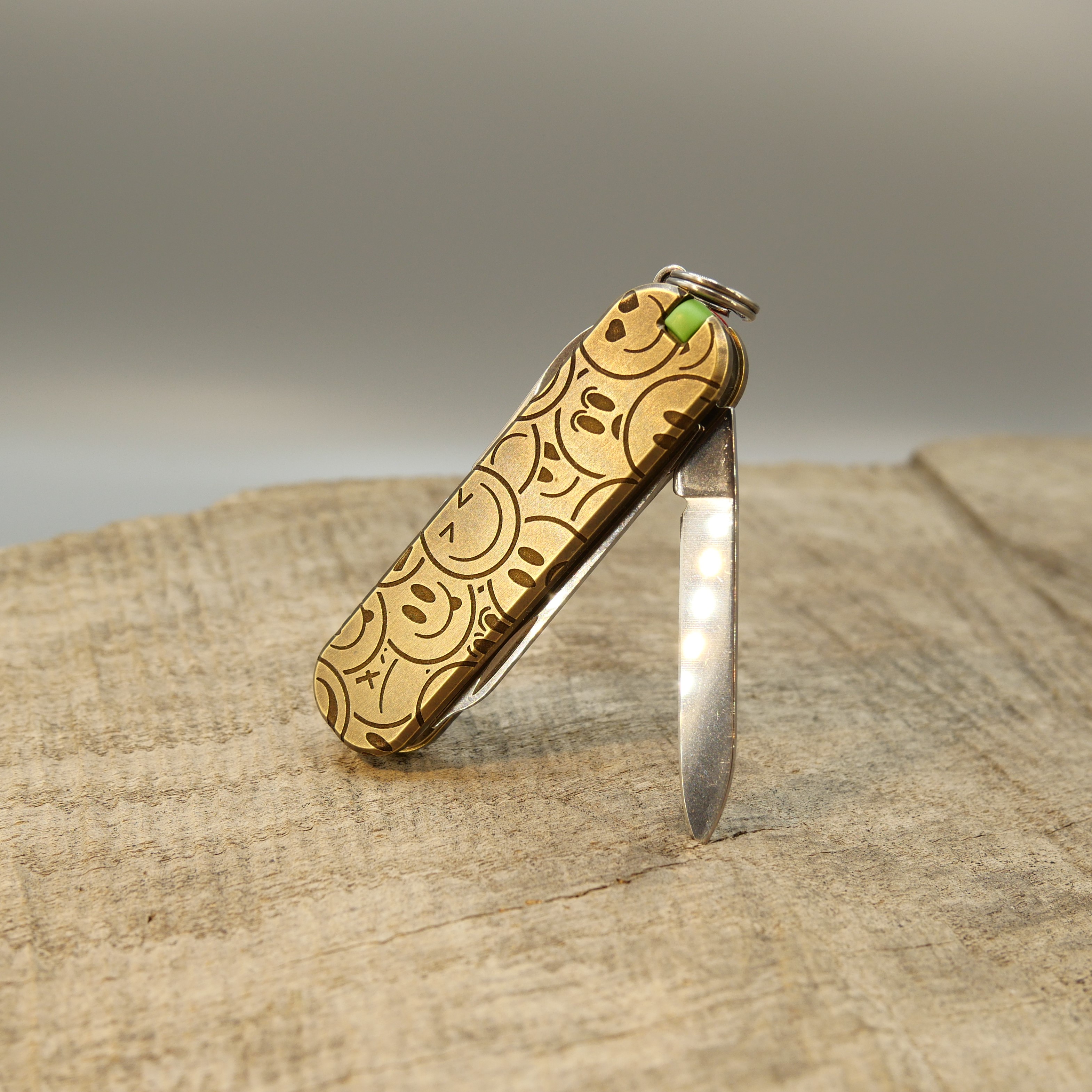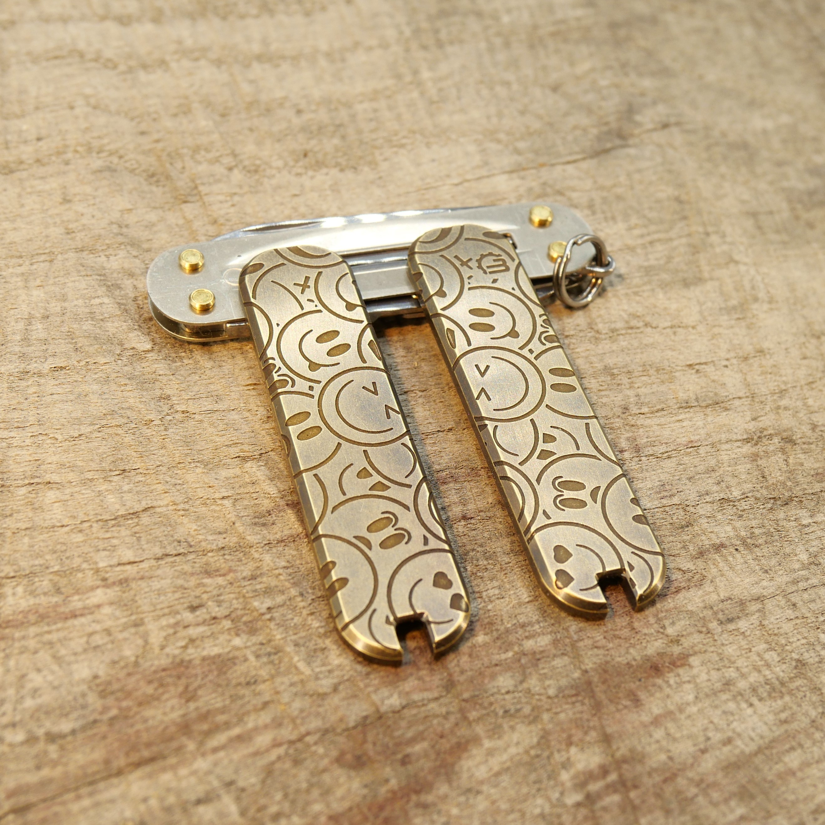 MESSING - SMILEY - Griffschalen oder montiertes Taschenmesser - 58mm