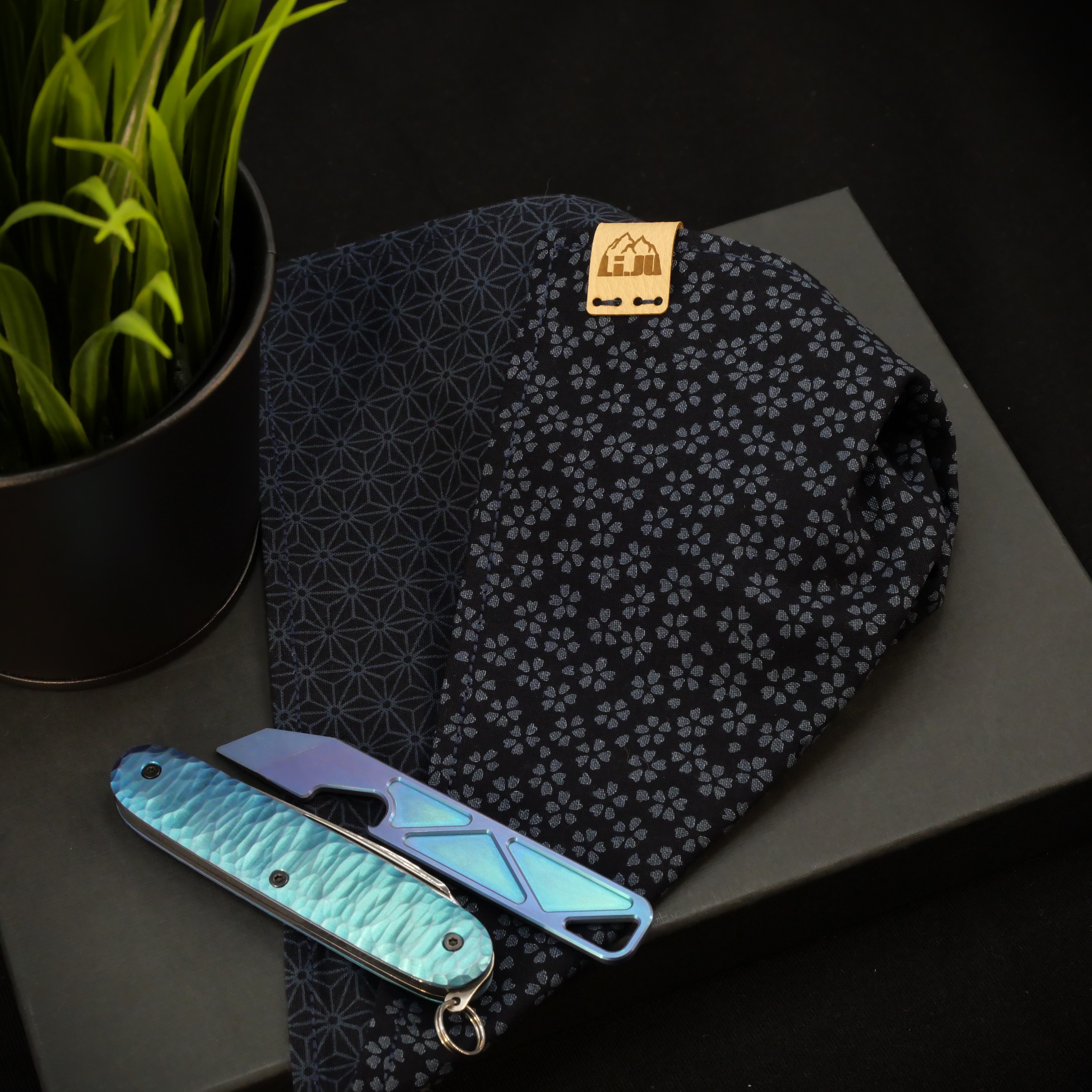 DARK FLOWER - EDC HANDKERCHIEF - HANK - tiefblau